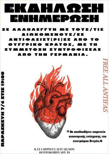 Εκδήλωση για τους διωκόμενους/ες αντιφασίστ(ρι)ες από το Ουγγρικό Κράτος