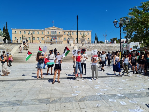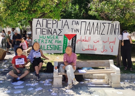 The hunger strike in solidarity with Palestine by Mothers Against Genocide continues with a daily presence at Syntagma Square, from 12 to 2 pm.
