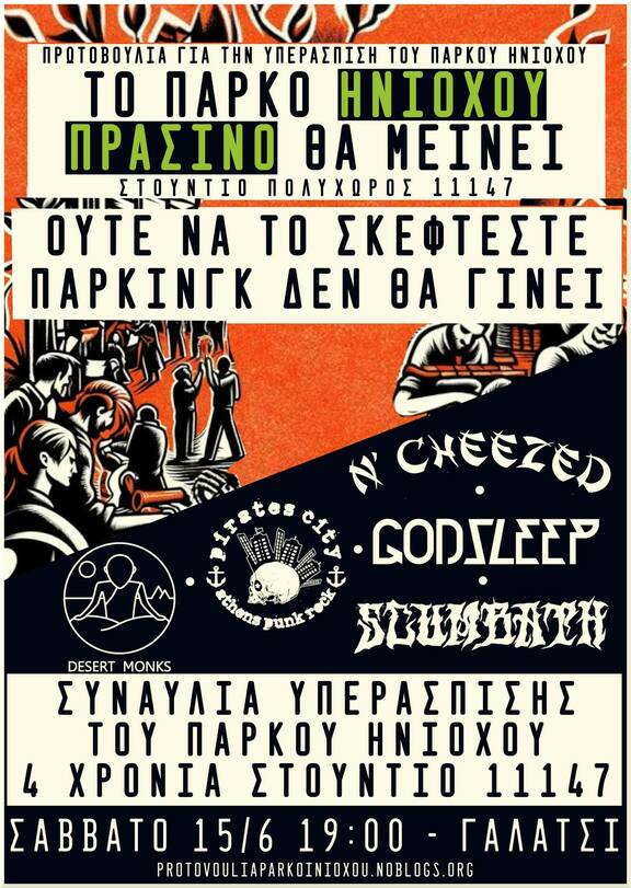 Το Σάββατο 15 Ιουνίου στις 19:00 θα πραγματοποιηθεί συναυλία για την υπεράσπιση του πάρκου Ηνιόχου μαζί με το στούντιο πολυχώρος 11147 να γιορταζει τα 4 χρονια του στο Γαλάτσι.