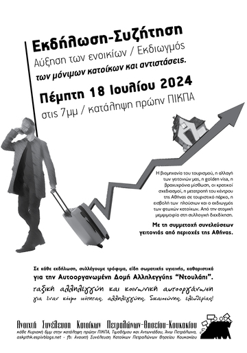 Εκδήλωση-Συζήτηση: Αύξηση των ενοικίων / εκδιωγμός των μόνιμων κατοίκων και αντιστάσεις.