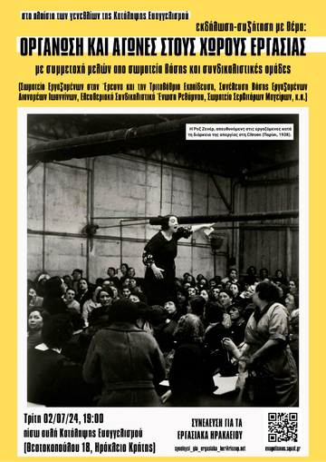 Εκδήλωση-Συζήτηση : Η οργάνωση στους χώρους εργασίας.*με την συμμετοχή σωματείων βάσης και συνδικαλιστικών ομάδων του ελλαδικού χώρου(Συνέλευση για τα εργασιακά Ηρακλείου ).
