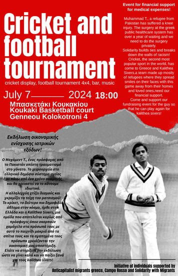 Cricket, the second most popular sport in the world, has come to greece and Kalithea Sixers, a team made up mostly of refugees where they spread smiles on their faces with this game away from their homes and loved ones, need our financial support.