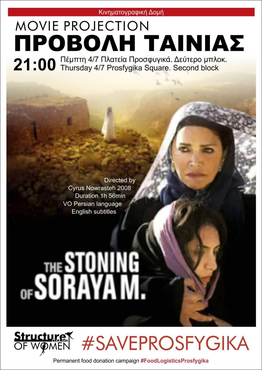 Την Πέμπτη 4/7 στις 21:00 στην πλατεία των Προσφυγικών, θα προβληθεί η ταινία "The stoning of Soraya M." . Η περιγραφή της ταινίας: