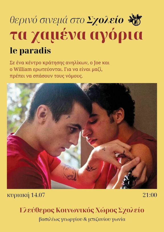 Ώρα έναρξης Προβολής 21:00, στην αυλή του Ελεύθερου Κοινωνικού Χώρου Σχολείο, Βασιλέως Γεωργίου και Μπιζανίου Γωνία.