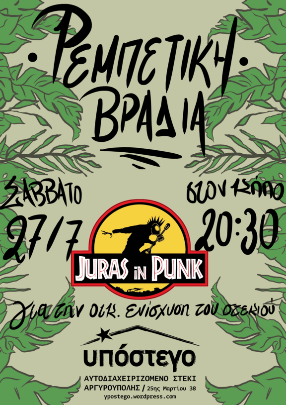 Ρεμπέτικη βραδιά για την οικονομική ενίσχυση του Υποστέγου στον κήπο το Σάββατο 27 Ιουλίου στις 20:30 με τους/τις Juras in Punk