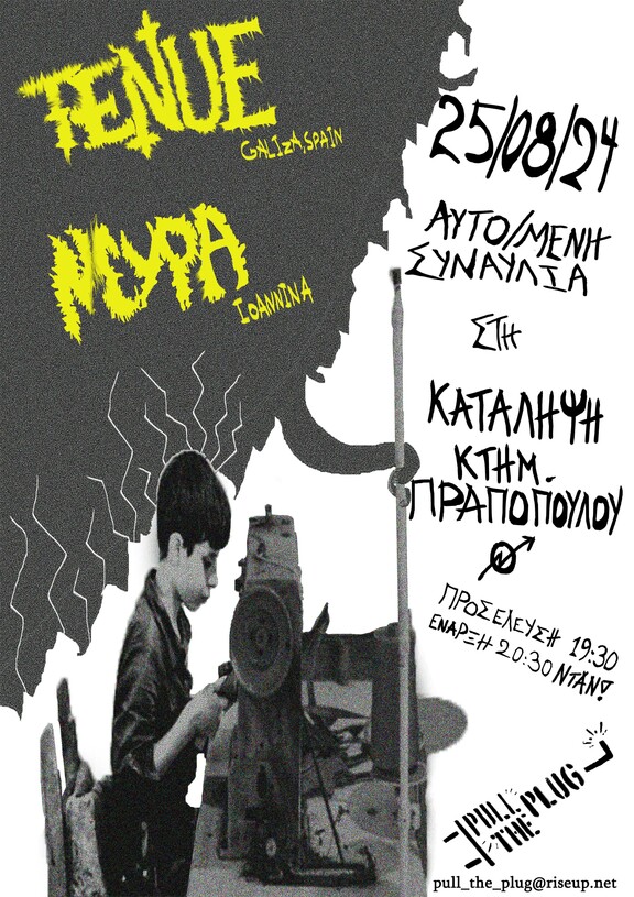 Συναυλία της αυτοοργανωμένης μουσικής ομάδας Pull the Plug στην Κατάληψη Κτήματος Πραποπούλου. Ερχόμαστε νωρίς, ενισχύουμε τις καταλήψεις και τις αυτοοργανωμένες δομες.