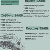 - 21.00 Προβολή της ταινίας "Life is waiting: referendum and resistance in Western Sahara " στην πλατεία των Προσφυγικών