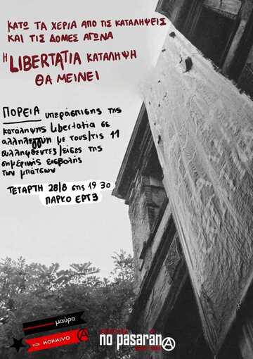 Από την Κρήτη μέχρι τη Θεσσαλονίκη και σε όλη την Ελλάδα οι καταλήψεις μάχονται και αντιστέκονται. Δεν παραδίνονται. Εμείς σαν κατάληψη Libertatia αγωνιζόμαστε σκληρά εδώ και πολλά χρόνια να ανοικοδομήσουμε το κτίριο και συνεχίσει η κατάληψη Libertatia να είναι ανοιχτή προσβάσιμη στην κοινωνία και τον κόσμο του αγώνα. Οι καταλήψεις είναι οι χώροι που προεικονίζουν τον κόσμο που θέλουμε να ζούμε, έναν κόσμο ελευθερίας, ισότητας και αλληλεγγύης. Αν νομίζουν ότι θα παραδοθούμε είναι γελασμένοι. Θα μας βρουν μπροστά τους.