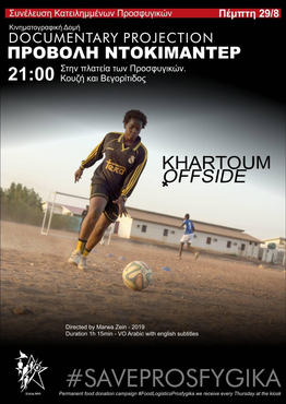 On Thursday 29/8 at 21:00 in the square of Prosfygika, the movie "Khartoum Offside" will be screened.
