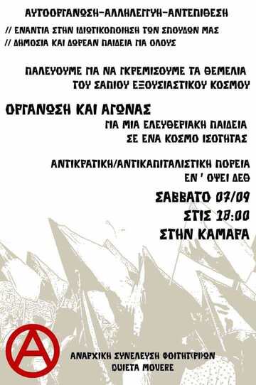 Αντικρατική / Αντικαπιταλιστική διαδήλωση: Σάββατο 7/9, 18:00, Καμάρα