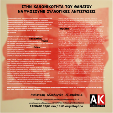 Διαδηλώνουμε Σάββατο 7/9 Καμαρα στις 18:00