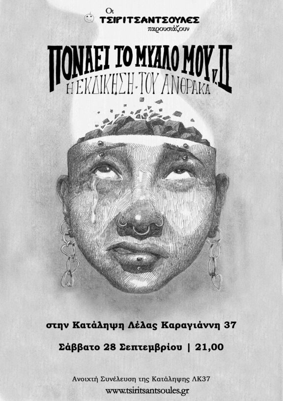 Ευχαριστούμε το αντιεξουσιαστικό, αναρχικό στέκι Αντίπνοια για τη φιλοξενία των προβών μας κι όλες τις τσιριτσάντσουλες που βοήθησαν στην παραγωγή αυτής της παράστασης.