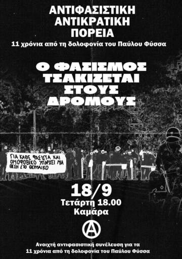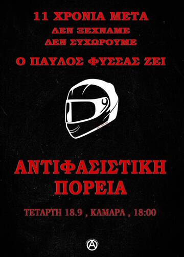 Αντιφασιστική διαδήλωση 18/9 για τα 11 χρόνια από τη δολοφονία του Παύλου Φύσσa