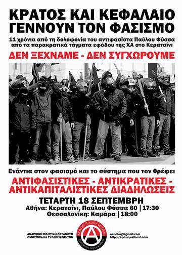 Αντιφασιστικές-Αντικρατικές-Αντικαπιταλιστικές διαδηλώσεις 18 Σεπτέβρη: