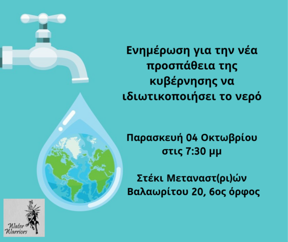 Ενημέρωση για την νέα προσπάθεια ιδιωτικοποίησης του νερού από την κυβέρνηση