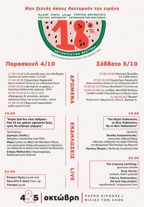 18ο Αντιρατσιστικό Φεστιβάλ - Γιορτή Κοινωνικής Αλληλεγγύης Χανίων