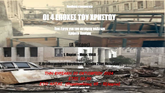 Εκδήλωση μνήμης για τον αγωνιστή Χρήστο Κασίμη ακριβώς 47 χρόνια από τη δολοφονία του (20 Οκτωβρίου 1977) με την προβολή του ντοκιμαντερ "Οι 4 εποχές του Χρήστου" (Α' Μέρος) στο Αλτάι την Κυριακή 20 Οκτωβρίου 2024 στις 20.00.