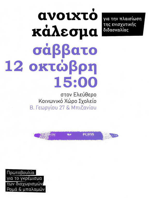 Σάββατο 12 Οκτώβρη, 15:00, στον ΕΚΧ Σχολείο