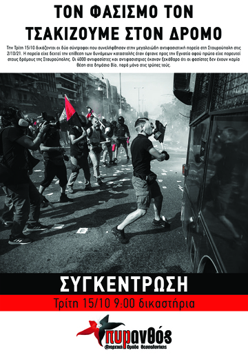 Συγκέντρωση αλληλεγγύης την ημέρα της δίκης, Τρίτη 15/10, 9:00, Δικαστήρια Θεσσαλονίκης