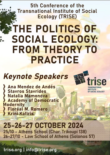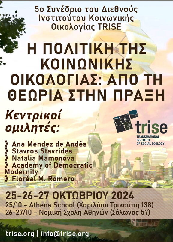 Το Διεθνές Ινστιτούτο Κοινωνικής Οικολογίας (TRISE) είναι στην ευχάριστη θέση να ανακοινώσει το συνέδριό του στις 25-27 Οκτωβρίου 2024 στην Αθήνα!