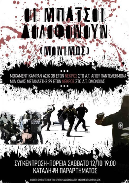 Από τον Σιδέρη και την Τσιβικά το '76, το Νίκο Σακελλίωνα και τον Αλέξη Γρηγορόπουλο το '08 και την Κατερίνα Γκουλιώνη το '09 μέχρι και σήμερα Κράτος-Μπάτσοι-Δικαστές Βασανίζουν, Βιάζουν, Δολοφονούν και συγκαλύπτουν.