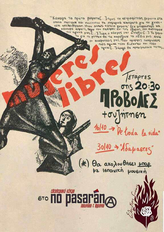 Τετάρτη 16/10 στις 22:00 στο Ελευθεριακo κέντρο "No pasaran" μετά την προβολή της ταινιας ''De toda la vida''