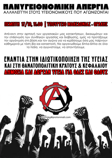 ΑΓΩΝΑΣ ΓΙΑ ΔΗΜΟΣΙΑ & ΔΩΡΕΑΝ ΥΓΕΙΑ - ΠΑΝΥΓΕΙΟΝΟΜΙΚΗ ΑΠΕΡΓΙΑ ΠΕΜΠΤΗ 17/10 - ΑΛΛΗΛΕΓΓΥΗ ΣΤΟΥΣ ΥΓΕΙΟΝΟΜΙΚΟΥΣ (ΓΙΑΤΡΟΥΣ, ΤΡΑΥΜΑΤΙΟΦΟΡΕΙΣ, ΝΟΣΗΛΕΥΤΙΚΟ ΚΑΙ ΥΠΟΛΟΙΠΟ ΠΡΟΣΩΠΙΚΟ) ΠΟΥ ΑΓΩΝΙΖΟΝΤΑΙ