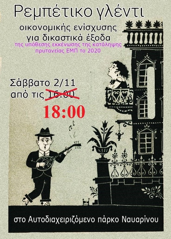 Γλέντι για τα δικαστικά έξοδα των συλληφθείσων/-έντων της εκκένωσης της κατειλημμένης πρυτανείας ΕΜΠ 2020 το Σάββατο από τις 18:00 στο παρκάκι Ναυαρίνου.