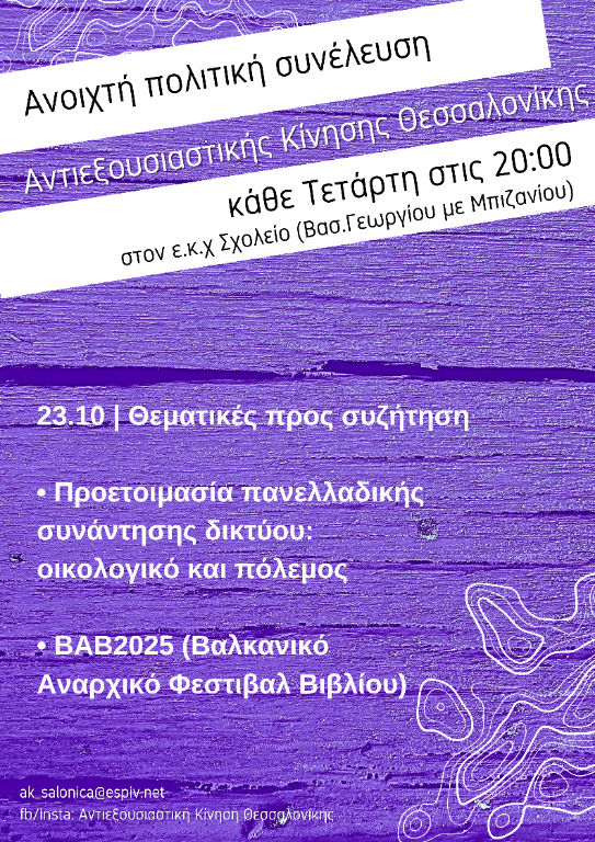 Ανοιχτή θεματική συνέλευση Αντιεξουσιαστικής Κίνησης Θεσσαλονίκης