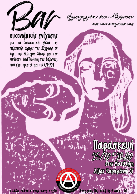 Bar οικονομικής ενίσχυσης για τα δικαστικά έξοδα της πολιτικής αγωγής της 12χρονης εν όψει της δεύτερης δίκης για την υπόθεση trafficking του Κολωνού, που έχει οριστεί για τις 6/11/24
