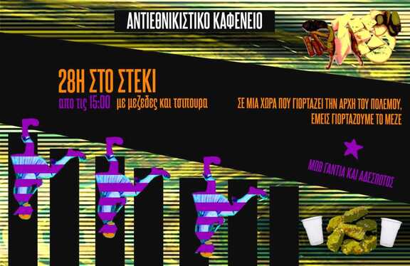 Την Δευτέρα 28 Οκτωβρίου σας περιμένουμε στο στέκι για να περάσουμε μαζί την ημέρα αυτή με τον τρόπο που πρέπει: αντιεθνικιστικά και συλλογικά!