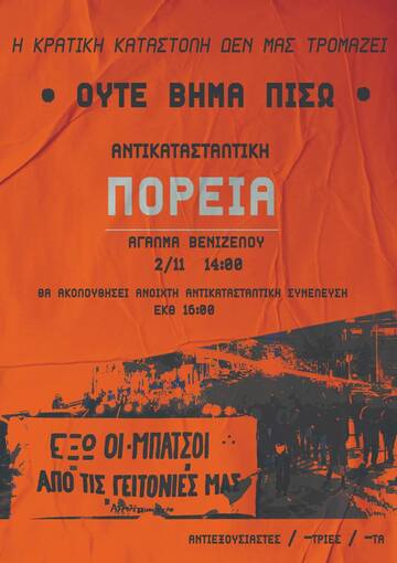 Κάλεσμα στήριξης της αντικατασταλτικής πορείας, Σάββατο 2/11 | Αγ. Βενιζέλου | 14:00
