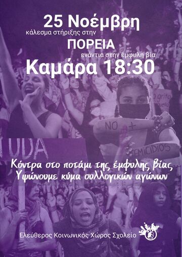Στηρίζουμε τη φεμινιστική πορεία της 25ης Νοέμβρη 18.30 στη Καμάρα.