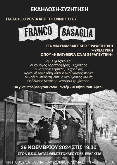 Εκδήλωση-συζήτηση για τα 100 χρόνια από τη γέννηση του Franco Basaglia