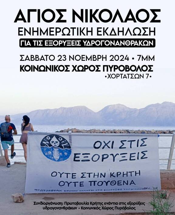 Συνδιοργάνωση εκδήλωσης: Πρωτοβουλία Κρήτης ενάντια στις εξορύξεις υδρογονανθράκων • Κοινωνικός Χώρος Πυρόβολος