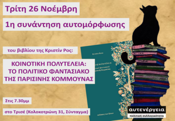 Σας καλούμε όλες και όλους στον κύκλο ανάγνωσης-αυτομόρφωσης που ξεκινά πάνω στο βιβλίο "Κοινοτική πολυτέλεια: Το πολιτικό φαντασιακό της Παρισινής Κομμούνας" της Kristin Ross.