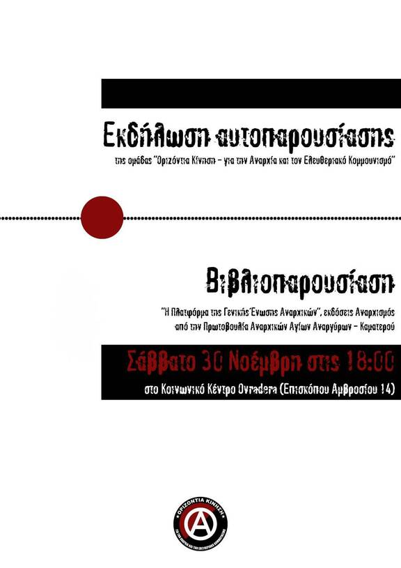 Εκδήλωση Αυτοπαρουσίασης της ομάδας "Οριζόντια Κίνηση - Για την Αναρχία και τον Ελευθεριακό Κομμουνισμό"