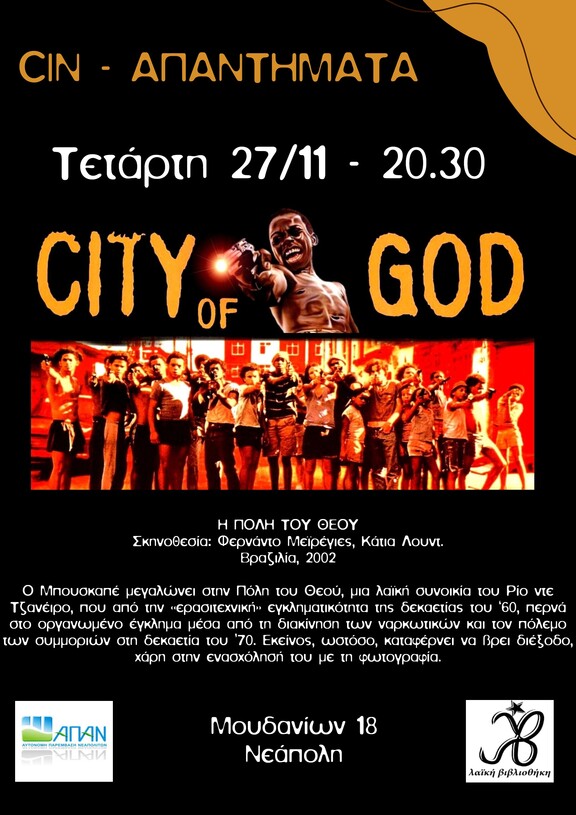 Την Τετάρτη 27 Νοεμβρίου στις 20.30, η προβολή της ταινίας "Η πόλη του θεού"