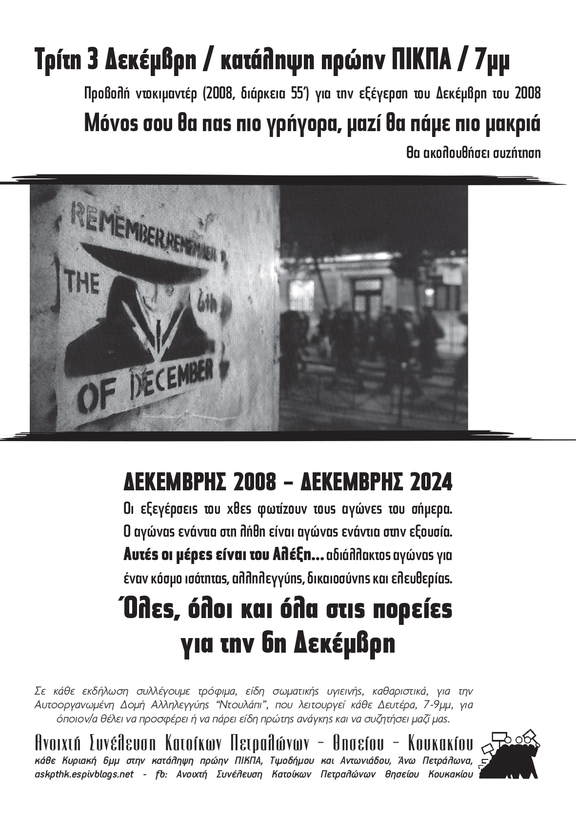 Προβολή ντοκιμαντέρ (2008, διάρκεια 55') για την εξέγερση του Δεκέμβρη του 2008