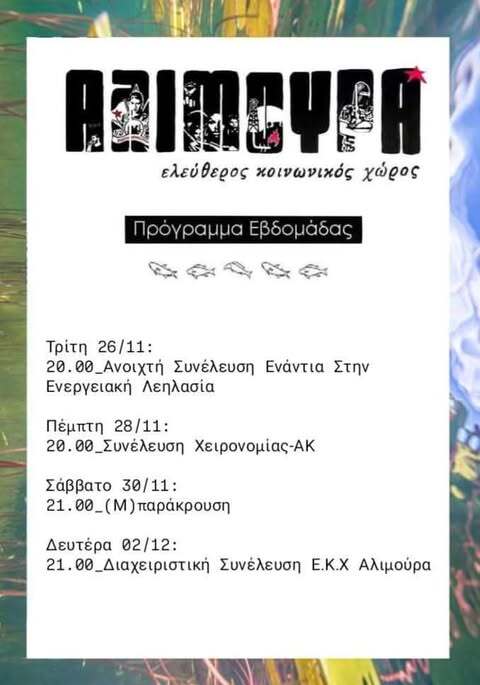 Πρόγραμμα Αλιμούρας από 26/11 έως 02/12