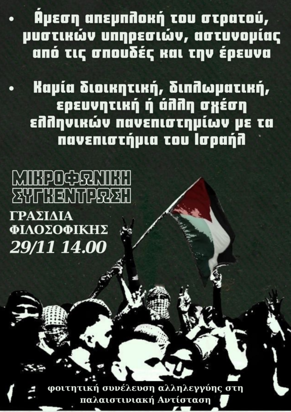 Άμεση απεμπλοκή των πανεπιστημίων από τα συμφέροντα του γενοκτόνου Ισραήλ