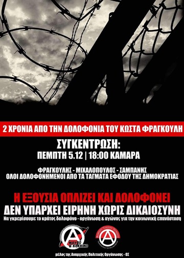 *Στηρίζουμε την συγκέντρωση για τα δύο χρόνια από τη δολοφονία του Κώστα-Κάλο Φραγκούλη, 5/12, στις 18:00, στη Καμάρα