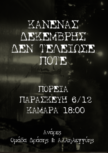 ΟΛΟΙ-ΕΣ-Α ΠΑΡΑΣΚΕΥΗ 6/12 ΣΤΙΣ ΠΟΡΕΙΕΣ ΜΝΗΜΗΣ ΚΑΙ ΑΓΩΝΑ ΓΙΑ ΤΟΝ ΑΛΕΞΑΝΔΡΟ ΓΡΗΓΟΡΟΠΟΥΛΟ!