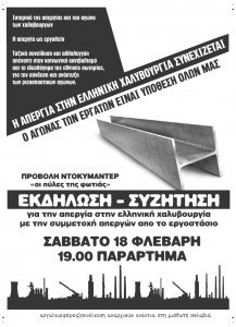 Για την απεργία στην Ελληνική Χαλυβουργία με την συμμετοχή απεργών από το εργοστάσιο