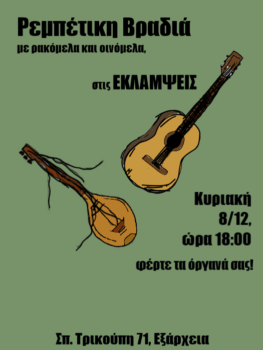 Ρεμπέτικη βραδιά με ρακόμελα και οινόμελα στις Εκλάμψεις, την Κυριακή από τις 18.00