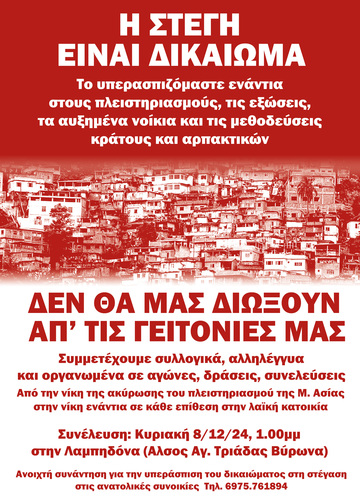 Το υπερασπιζόμαστε ενάντια στους πλειστηριασμούς, τις εξώσεις, τα αυξημένα νοίκια και τις μεθοδεύσεις κράτους και αρπακτικών