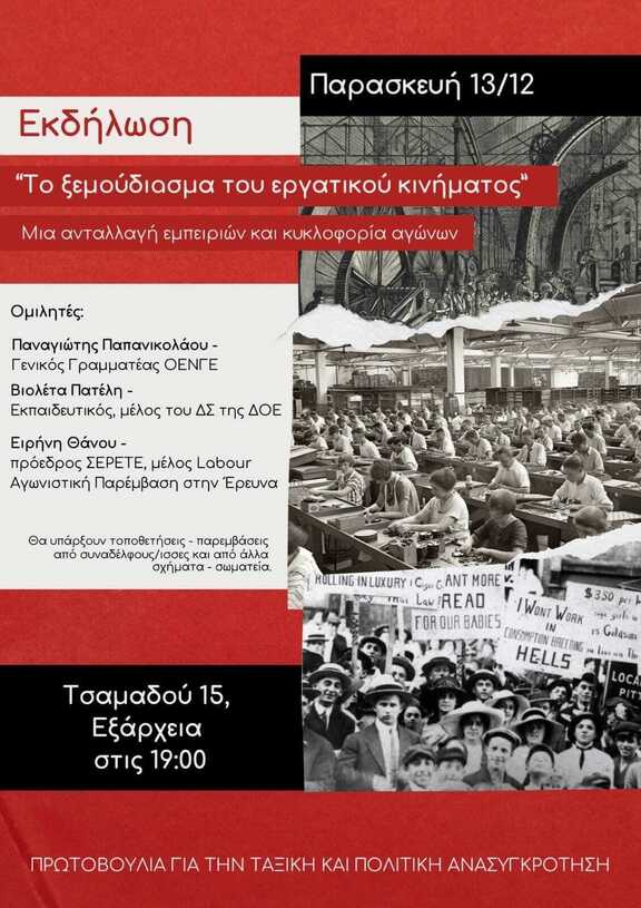 Η εκδήλωση συζήτηση επιδιώκει την κυκλοφορία των αγώνων που έχουν ξεσπάσει σε διάφορους κλάδους .
