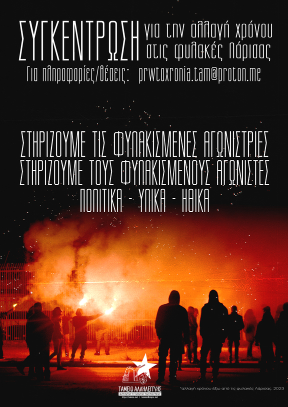 Kαι φέτος, παραμονή πρωτοχρονιάς, θα βρεθούμε δίπλα στους κοινωνικούς και πολιτικούς κρατούμενους στις φυλακές Λάρισας.