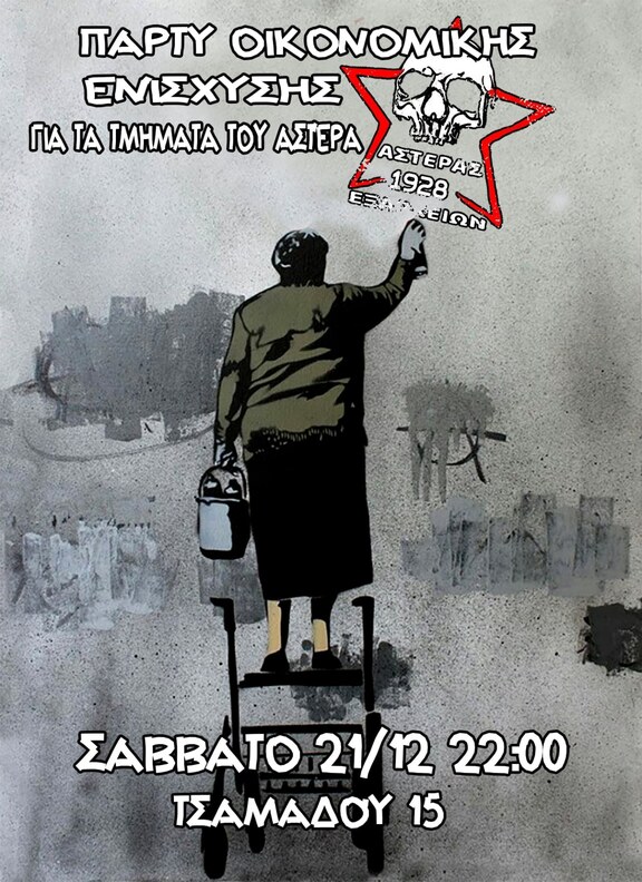 Ο Αστέρας Εξαρχείων σας προσκαλεί Τσαμαδού 15 21/12 και ώρα 22:00 στο πάρτυ για την οικονομική ενίσχυση των τμημάτων του.