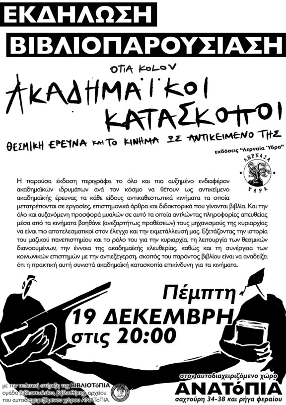 Βιβλιοπαρουσίαση του «Ακαδημαϊκοί κατάσκοποι (θεσμική έρευνα & το κίνημα ως αντικείμ…